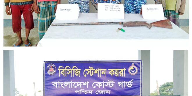 সুন্দরবনের কয়রায় কোস্ট গার্ডের পৃথক ২ টি অভিযানে অস্ত্র ও গোলাবারুদসহ জিম্মি জেলে উদ্ধার এবং হরিণের মাংসসহ শিকারি আটক।