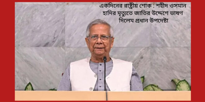 একদিনের রাষ্ট্রীয় শোক : শহীদ ওসমান হাদির মৃত্যুতে জাতির উদ্দেশে ভাষণ দিলেম প্রধান উপদেষ্টা