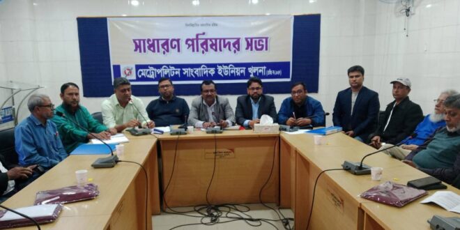 হুমায়ুন কবীর বালু মিলনায়তনে এ সাধারণ সভা অনুষ্ঠিত হয়। সভায় বক্তারা বলেন, ৩৬ জুলাই গণঅভ্যূত্থান পরর্ব তী দেশে খুলনায় র্কমরত পেশাদার সাংবাদিকদের অধি কার আদায়, র্কমসংস্থান সৃষ্টি এবং রুটি রুজির আন্দো লনে নেতৃত্ব দেবে এমইউজে খুলনা।