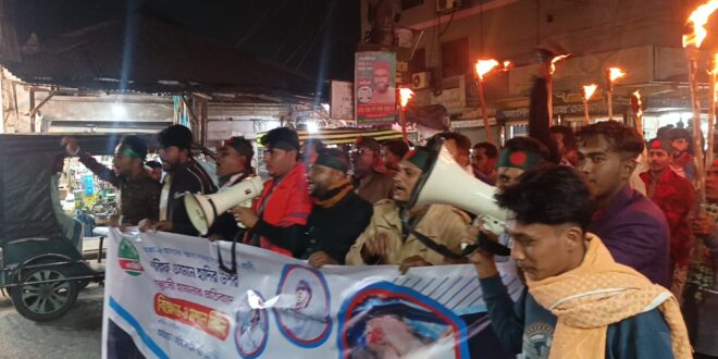 ঢাকা-৮ আসনের স্বতন্ত্র প্রার্থী শরীফ ওসমান হাদিকে গুলির ঘটনার তীব্র নিন্দা ও জড়িতদের দৃষ্টান্তমূলক শাস্তির দাবিতে বাগেরহাটের মোংলায় বিক্ষোভ ও মশাল মিছিল করেছে জাতীয় নাগরিক পার্টি (এনসিপি) মোংলা উপজেলা কমিটি।