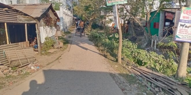 কালীগঞ্জে সাব-রেজিস্ট্রি অফিস সংলগ্ন খালপাড়ের সরু রাস্তা সংস্কার ও সুরক্ষা রেলিং স্থাপনে দাবী এলাকাবাসীর