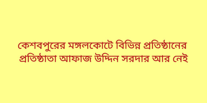 মঙ্গলকোট বাজার, মঙ্গলকোট মাধ্যমিক বিদ্যালয়-সহ বিভিন্ন প্রতিষ্ঠানের প্রতিষ্ঠাতা ও মঙ্গলকোট বাসস্ট্যান্ড বাজার কমিটির সাধারণ সম্পাদক জামাল উদ্দিন সরদা রের বাবা আফাজ উদ্দিন সরদার (৯৫) সোমবার (১৫ ডিসেম্বর-২৫) ভোরে বার্ধক্য জনিত কারণে মঙ্গলকোট নিজ বাসভবনে ইন্তেকাল করেছেন, ইন্না-লিল্লাহ ওয়া ইন্না ইলাহী রাজিউন…। তার ১ স্ত্রী, ২ ছেলে, ৩ মেয়ে ও বহু গুণগ্রাহী ব্যক্তি আছে।