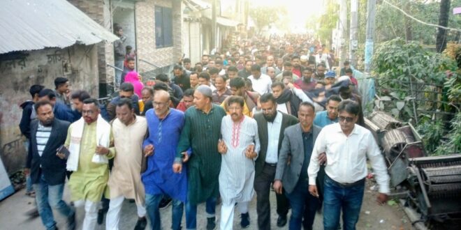 শনিবার (১৩ ডিসেম্বর-২৫) বিকেলে উপজেলা ও পৌর বিএনপির উদ্যোগে ওই মিছিল অনুষ্ঠিত হয়। মিছিলটি দলীয় কার্যালয় থেকে শুরু হয়ে শহরের প্রধান প্রধান সড়ক ঘুরে একই স্থানে এসে শেষ হয়।