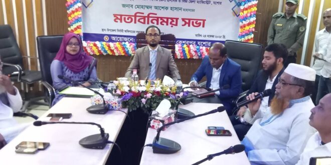 মতবিনিময় সভায় উপজেলা নির্বাহী অফিসার রেকসোনা খাতুন-এর সভাপতিত্বে এবং উপজেলা সমাজসেবা অফি সার রোকনুজ্জামান-এর সঞ্চালনায় প্রধান অতিথি হিসে বে বক্তব্য রাখেন, যশোরের জেলা প্রশাসক ও বিজ্ঞ জে লা ম্যাজিস্ট্রেট মোহাম্মদ আশেক হাসান।