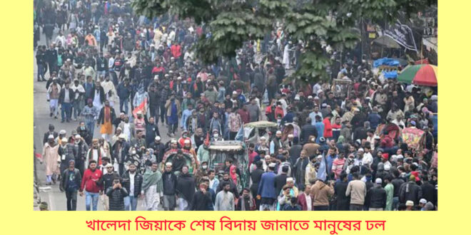 - সাবেক প্রধানমন্ত্রী ও বিএনপি চেয়ারপারসন বেগম খালেদা জিয়াকে শেষ শ্রদ্ধা জানাতে দেশের বিভিন্ন প্রান্ত থেকে আসা মানুষের ঢল নেমেছে সংসদ ভবন এলাকায়।