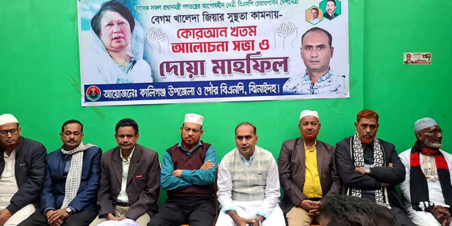 খালেদা জিয়ার আরোগ্য প্রার্থনায় কালীগঞ্জে কোরআন খতম ও দোয়া মাহফিল