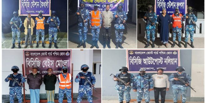 খুলনা, বাগেরহাট ও সাতক্ষীরায় কোস্ট গার্ডের অভিযানে ৬ জন আটক