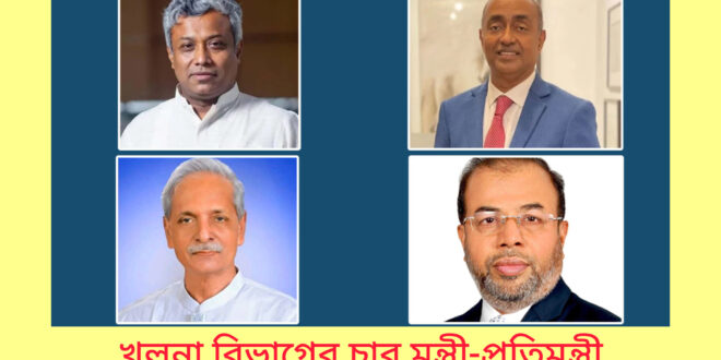 যশোর প্রতিনিধি:ত্রয়োদশ জাতীয় সংসদ নির্বাচনে নির্বা চিত সংসদ সদস্যদের মধ্যে খুলনা বিভাগ থেকে মন্ত্রী ও প্রতিমন্ত্রী হয়েছেন চারজন।