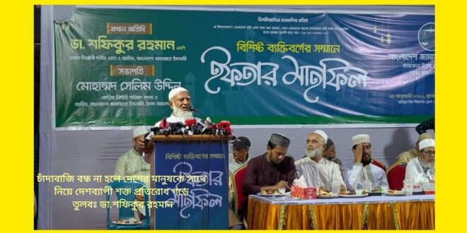 চাঁদাবাজি বন্ধ না হলে দেশের মানুষকে সাথে নিয়ে শক্ত প্রতিরোধ গড়ে তুলবঃ ডা.শফিকুর রহমান