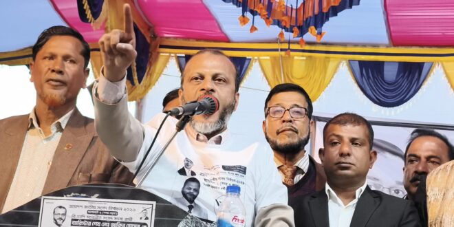 আপনার একটি ভুলের কারণে এই দেশ জঙ্গিবাদের দি কে যেতে পারে। সুতরাং ভুল করলে চলবে না। আগামী ১২ ফেব্রুয়ারি ধানের শীষ প্রতীকে ভোট দিয়ে গণতান্ত্রিক দল বিএনপিকে ক্ষমতায় আনতে হবে। রবিবার (০১ ফে ব্রুয়ারি) বিকেলে জেলা সদরের ডেমা ইউনিয়ন বিএন পি’র আয়োজনে নির্বাচনী জনসভায় এ কথা বলেছেন বাগেরহাট -২ (সদর-কচুয়া) সংসদীয় আসনে ধানের শীষে র প্রার্থী ব্যারিস্টার শেখ মোঃ জাকির হোসেন। জনসভায় আরো বক্তব্য রাখেন, বাগেরহাট জেলা বিএনপি’র সদস্য সচিব মোজাফফর রহমান আলম, যুগ্ম আহ্বায়ক খাদেম নিয়ামুল নাসির আলাপ, জেলা বিএনপি নেতা মনিরুল ইসলাম খান,সদর উপজেলা বিএনপি’র সভাপতি সৈয়দ নাসির আহমেদ মালেক, জেলা যুবদলের সাবেক সাধারণ সম্পাদক সুজন মোল্লা, জেলা স্বেচ্ছাসেবক দলের সদস্য সচিব ডালিম ফকির।