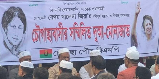 চৌগাছায় সাবেক প্রধানমন্ত্রী বেগম খালেদা জিয়ার সুস্থতা কামনায় দোয়া ও মোনাজাত