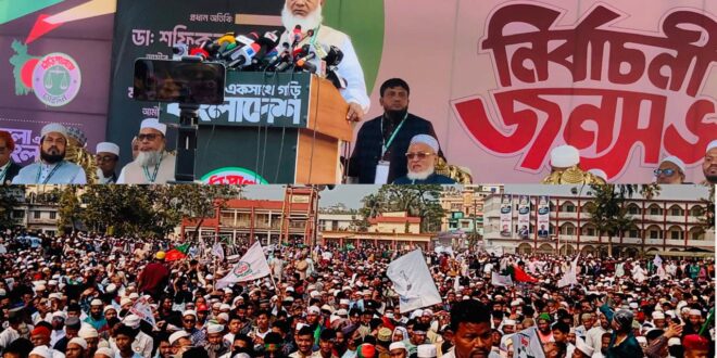 বাংলাদেশ জামায়াতে ইসলামী লক্ষ্মীপুর জেলা শাখার আয়োজনে আজ (৩০ জানুয়ারি) শুক্রবার বেলা ০২ টায় স্থানীয় আদর্শ সামাদ সরকারি উচ্চ বিদ্যালয় মাঠ প্রাঙ্গনে অনুষ্ঠিত নির্বাচনী জনসভায় তিনি এসব কথা বলেন।
