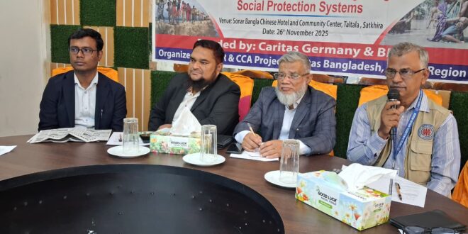 সাতক্ষীরায় জলবায়ু-পরিবর্তন এবং অভ্যন্তরীণ অভিবাসীদের সামাজিক সুরক্ষা.ব্যবস্থা একীভূত করার জন্য এক মিডিয়া অ্যাডভোকেসি সভা বুধবার (২৬ নভেম্বর)