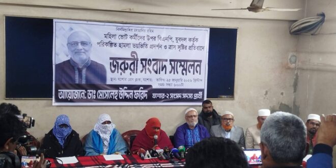 ঝিকরগাছায় জামায়াতের মহিলা নেত্রীদের ওপর হামলা:প্রতিবাদে প্রেস ক্লাবে সংবাদ সম্মেলন