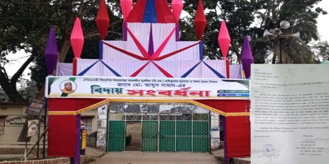 তাঁর বিদায় উপলক্ষে বিদ্যালয় কর্তৃপক্ষ জাঁকজমকপূর্ণ অনুষ্ঠানের আয়োজন করলেও আমার মতো আরও অনে ক প্রবীণ সহকারী শিক্ষককে অত্যন্ত অমর্যাদাকর ভাবে বিদায় নিতে হয়েছে। যেটা শিক্ষক সমাজের জন্য আপমা ন জনক অধ্যায়। ইতিপূর্বে আমি (