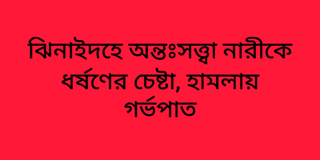 ঝিনাইদহে এক অন্তঃসত্ত্বা নারীকে ধর্ষণের চেষ্টা ও মার ধরের অভিযোগ উঠেছে প্রতিবেশী এক যুবকের বিরুদ্ধে। হামলার ফলে ওই নারীর চার মাসের গর্ভের সন্তান নষ্ট হয়েছে বলে অভিযোগ করা হয়েছে।