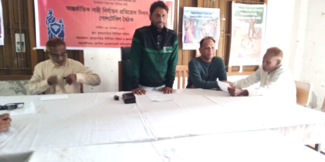 আন্তর্জাতিক নারী নির্যাতন প্রতিরোধ দিবন উপলক্ষে গোলটেবিল বৈঠকে।সভাপতিত্ব করেন কোস্টাল ডেভে।লপমেন্ট পার্টনারশিপ (সিডিপি)’র এরিয়া কো-আর্ডনেটর মোঃ হাবিবুর রহমান।