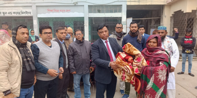শীতার্ত ও অসহায় মানুষের পাশে দাঁড়াতে ঝিনাইদহ জেলা প্রশাসনের উদ্যোগে নিম্ন আয়ের মানুষের মাঝে কম্বল বিতরণ করা হয়েছে।