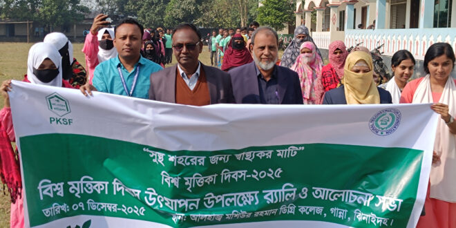 ‘সুস্থ শহরের জন্য স্বাস্থ্যকর মাটি’Ñ এই শ্লোগানকে সামনে রেখে ঝিনাইদহে।উদযাপিত হয়েছে বিশ্ব মৃত্তিকা দিবস।