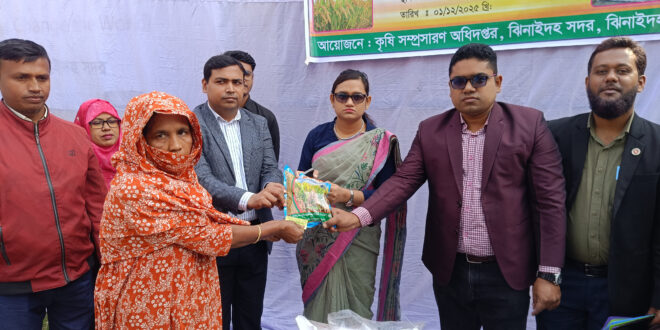 সোমবার (ডিসেম্বর) সকাল ১০টায় ঝিনাইদহ সদর উপ জেলা কৃষি অফিস চত্বরে।এসব সার ও বীজ বিতরণ করা হয়। সার ও বীজ বিতরণ অনুষ্ঠানে উপস্থিত ছিলেন সদর