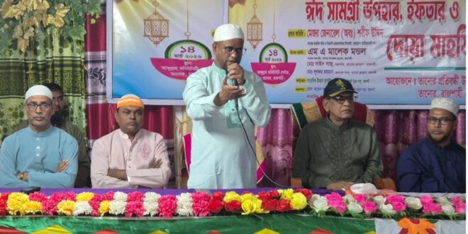 শনিবার(১৪মার্চ) তানোরের আব্দুল্লাহ কমিউনিটি সেন্টা রে ঈদ সামগ্রী বিতরণ শেষে ইফতার ও দোয়া মাহফিল অনুষ্ঠিত হয়।
