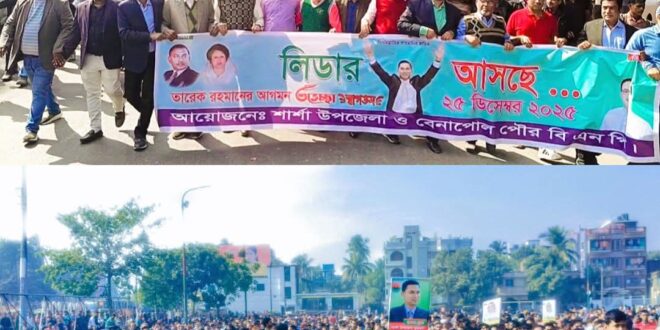 তারেক জিয়া আসছে বাংলাদেশ হাসছে’ ”লিডার আস ছে” সহ বিভিন্ন স্লোগানে মুখরিত যশোর এর স্থল বন্দর বেনাপোল  শহর।