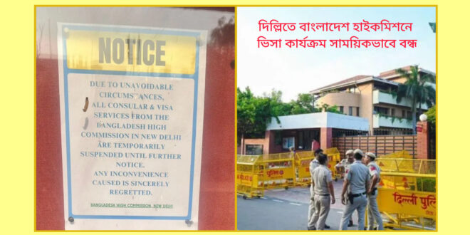 এমন পরিস্থিতে দিল্লিতে অবস্থিত বাংলাদেশ হাইকমিশন ভিসা কার্যক্রম সাময়িকভাবে বন্ধ ঘোষণা করেছে।
