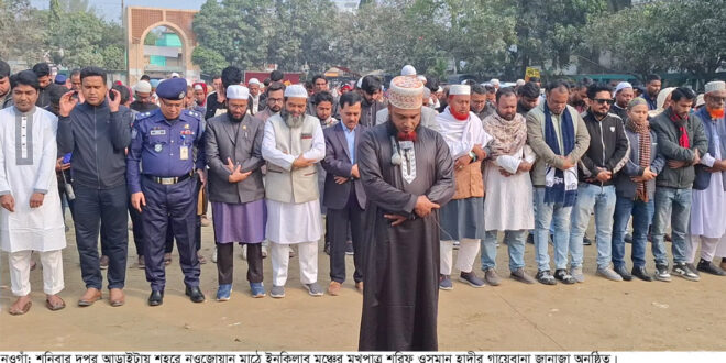 মামুন পারভেজ হিরা,নওগাঁঃ ইনকিলাব মঞ্চের মুখপাত্র শরিফ ওসমান হাদীর গায়েবানা জানাজা নওগাঁয় অনু ষ্ঠিত হয়েছে।