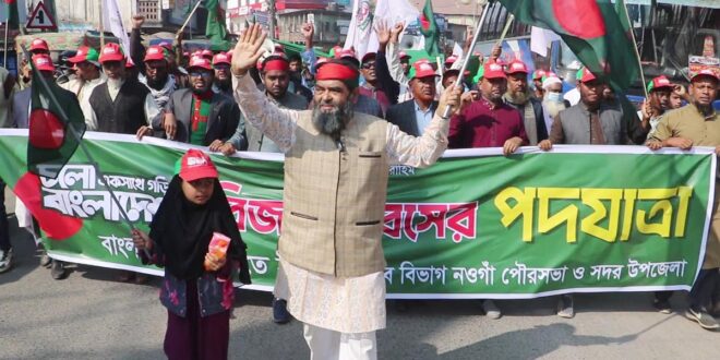 শোভযাত্রার নেতৃত্ব দেন বাংলাদেশ জামায়াতে ইসলামী মনোনিত নওগাঁ-৫ (সদর) আসনের প্রার্থী অ্যাডভোকেট আ.স.ম সায়েম।