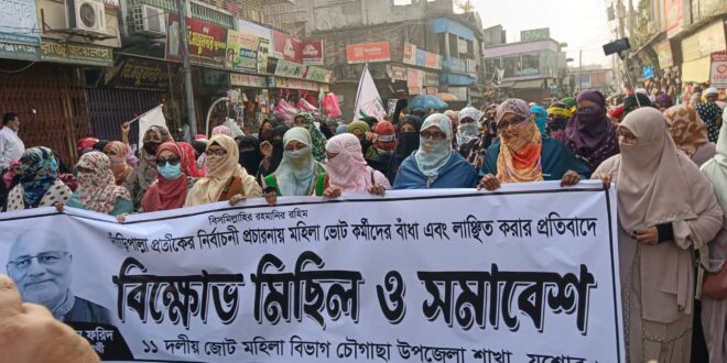 চৌগাছা প্রতিনিধি: নারী কর্মীদের ওপর হামলার প্রতিবা দে যশোরের চৌগাছায় মহিলা জামায়াতের বিক্ষোভ মিছিল ও সমাবেশ অনুষ্ঠিত হয়েছে।