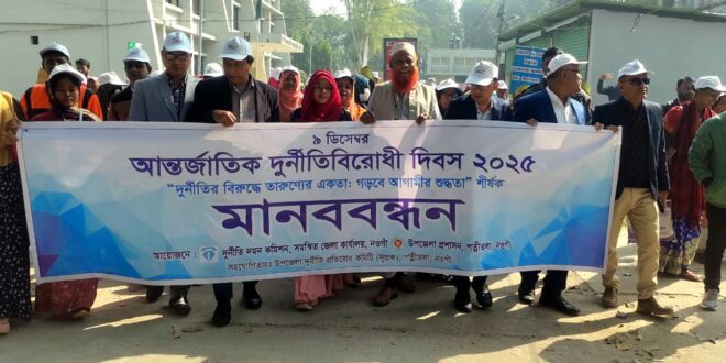 আব্দুল মতিন, পত্নীতলা (নওগাঁ) প্রতিনিধি – আন্তর্জাতিক দুর্নীতি বিরোধী দিবস/২৫ উদযাপন উপলক্ষে নওগাঁর পত্নীতলায় মঙ্গলবার দুর্নীতি দমন কমিশন সমন্বিত জেলা কার্যলয় নওগাঁ ও পত্নীতলা উপজেলা প্রশাসনের আয়ো জনে এবং উপজেলা দুর্নীতি প্রতিরোধ কমিটির সহযোগী তায় মানববন্ধন শেষে উপজেলা অডিটরিয়াম হলরুমে এক আলোচনা সভা অনুষ্ঠিত হয়েছে।