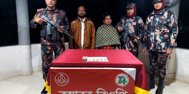 পত্নীতলায় ১৪ বিজিবি কর্তৃক মাদকদ্রব্য সহ ২ জন চোরাকারবারী আটক