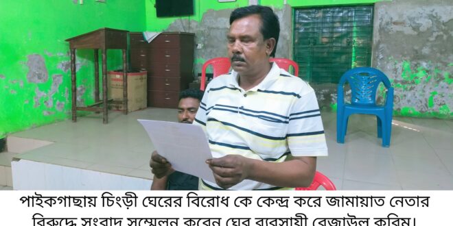 পাইকগাছায় চিংড়ী ঘেরের বিরোধকে কেন্দ্র করে এবার জামায়াত নেতা সহ ৪ ব্যক্তির বিরুদ্ধে বিভিন্ন অভিযোগ এনে পাল্টা সংবাদ সম্মেলন করেছেন ঘের ব্যবসায়ী রে জাউল করিম।
