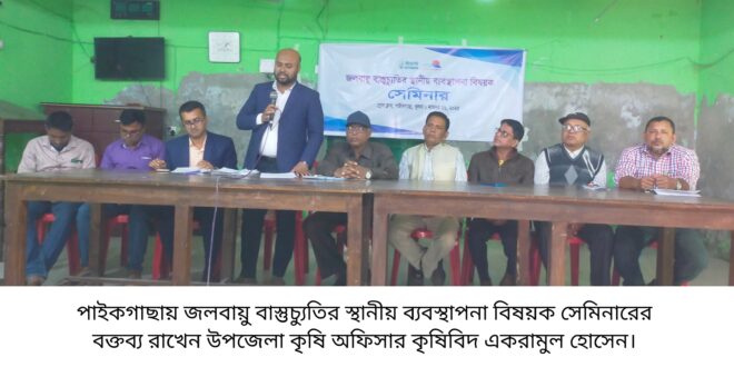 পাইকগাছায় জলবায়ু বাস্তুচ্যুতির স্থানীয় ব্যবস্থাপনা বিষ য়ক সেমিনার অনুষ্ঠিত হয়েছে।