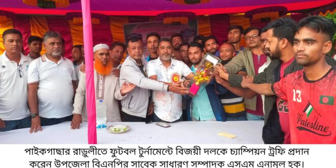 ২০ নভেম্বর বৃহস্পতিবার বিকেলে উপজেলার রাড়ুলীর শ্রীকন্ঠপুর সরকারি প্রাথমিক বিদ্যালয় মাঠে স্থানীয় আ য়োজক কমিটি টুর্নামেন্টের এ ফাইনাল খেলার আয়োজন করে।