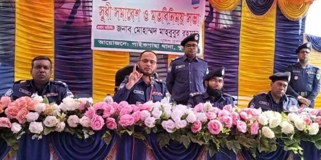 খুলনার পাইকগাছায় সামাজিক সম্প্রীতি,শান্তি ও আইন শৃঙ্খলা পরিস্থিতি সুদৃঢ় করার লক্ষ্যে “সুধী সম্প্রীতি সমা বেশ ও মতবিনিময় সভা” অনুষ্ঠিত হয়েছে।
