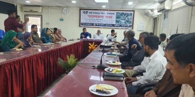 স্টাফ রিপোর্টার, পুঠিয়া (রাজশাহী) ঃ পুঠিয়ায় ২৫ মার্চ গণহত্যা দিবস উপলক্ষে আলোচনা সভা অনুষ্ঠিত হয়েছে।