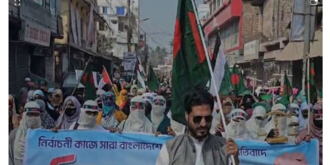 বাগেরহাটে বিক্ষোভ মিছিল ও সমাবেশ করেছে বাংলা দেশ জামায়াতে ইসলামী মহিলা বিভাগ।