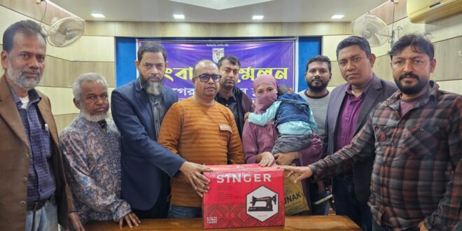 সোমবার দুপুরে বাগেরহাট প্রেসক্লাব মিলনায়তনে এই সেলাই মেশি ন বিতরণ করা হয়।