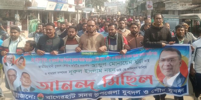 বাগেরহাটে যুবদলের আনন্দ মিছিল ও সমাবেশ