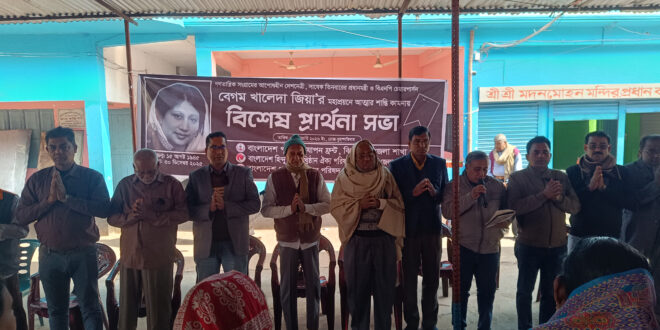 প্রয়াত সাবেক প্রধানমন্ত্রী বেগম খালেদা জিয়ার বিদেহী আত্মার শান্তি কামনায় ঝিনাইদহে মন্দিরে বিশেষ প্রার্থনা অনুষ্ঠিত হয়েছে।