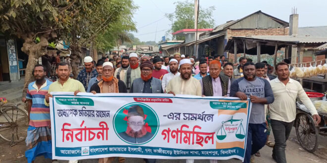 মহেশপুরে জামায়াত প্রার্থীর সমর্থনে গণমিছিল