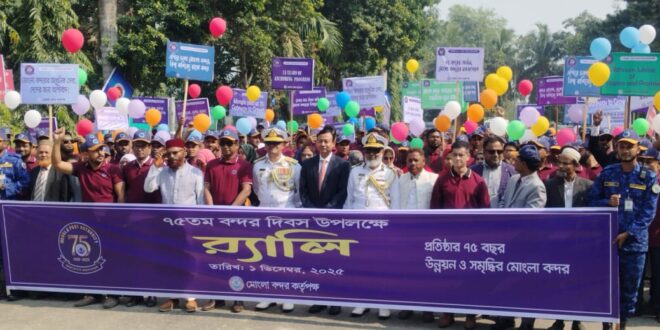 বাংলাদেশের দ্বিতীয় বৃহত্তম সমুদ্রবন্দর মোংলা তার ঐতিহ্যবাহী যাত্রার ৭৫ বছর পূর্তি উদ্‌যাপন করেছে জাঁকজমকপূর্ণ আয়োজনে।