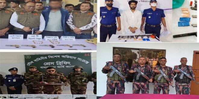 এরই ধারাবাহিকতায় যশোর ব্যাটালিয়নের দায়িত্বপূর্ণ এলাকায় অভিযান পরিচালনা করে অস্ত্র আটক করতে সক্ষম হচ্ছে।