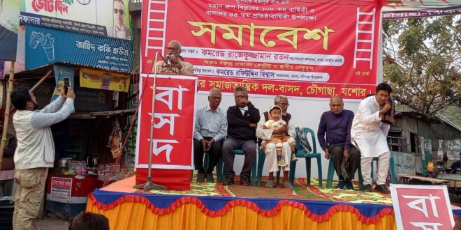 ; চৌগাছা (যশোর) প্রতিনিধিঃ’দুনিয়ার মজদুর এক হও’ শ্লোগানকে সামনে রেখে রুশ বিপ্লবের ১০৮ তম বার্ষিকী ও বাসদের ৪৫ তম প্রতিষ্ঠা বার্ষিকী উপলক্ষে সমাবেশ অনুষ্ঠিত।