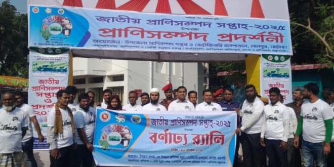 ”দেশীয় জাত,আধুনিক প্রযুক্তি,প্রাণিসম্পদে হবে উন্ন তি”এই প্রতিপাদ্য নিয়ে নাটোর লালপুরে উপজেলা প্রশা সন ও প্রাণিসম্পদ দপ্তরের আয়োজনে বর্ণাঢ্য র্যালী ও আলোচনা সভা সহ ৭দিন ব্যাপী মেলার উদ্বোধনের মধ্য দিয়ে প্রাণিসস্পদ সপ্তাহ শুরু হয়েছে।