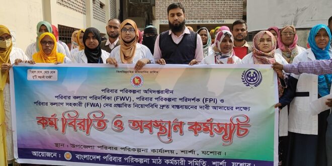 শার্শায় পরিবার পরিকল্পনা বিভাগের কর্মীদের অবস্থান কর্মসূচি