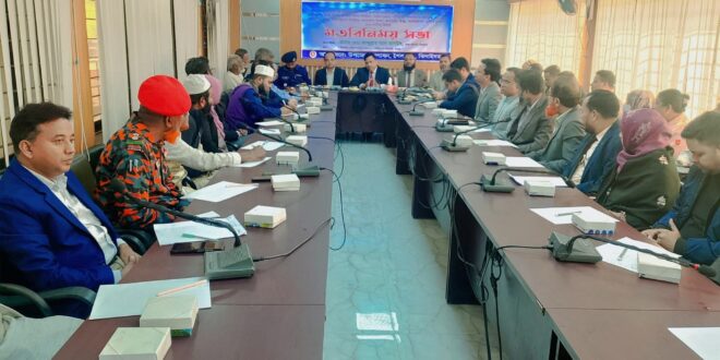 শৈলকুপা ( ঝিনাইদহ) সংবাদদাতাঃ ঝিনাইদহের শৈল কুপায় সোমবার সকালে উপজেলা পরিষদ হল রুমে সরকারি কর্মকর্তা ও স্থানীয় গণ্যমান্য ব্যক্তিবর্গের সাথে আসন্ন জাতীয় সংসদ নির্বাচন, আইনশৃঙ্খলা পরিস্থিতি, বাল্যবিবাহ, যৌতুক, আত্মহত্যা প্রতিরোধ, ডেঙ্গু, উন্নয়ন মূলক কার্যক্রম মানসম্মত শিক্ষা, জনসেবা, স্বাস্থ্য, স্যা নিটেশন, দূর্নীতি প্রতিরোধ এবং সার্বিক বিষয় নিয়ে এক মতবিনিময় সভা অনুষ্ঠিত হয়েছে।