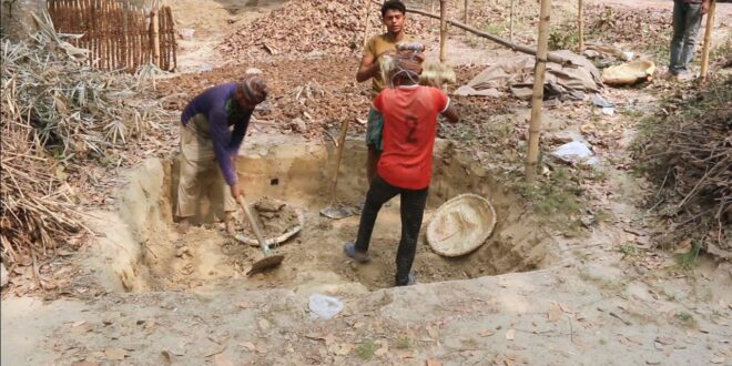 একই গ্রামের আকলিমা খাতুন বলেন,‘ঘরের সাথেই বড় গর্ত করা হয়েছে।