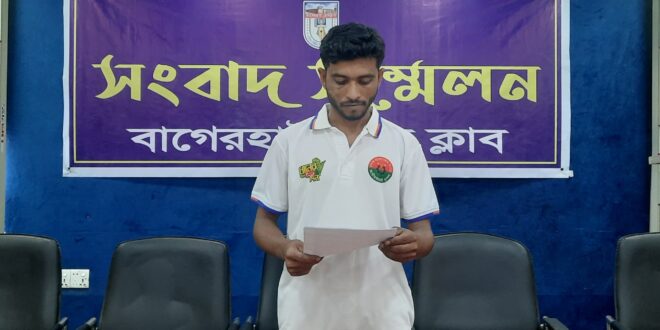 রবিবার (১৫ মার্চ) দুপুরে বাগেরহাট প্রেসক্লাবের হলরুমে তিনি এই সংবাদ সম্মেলন করেন।